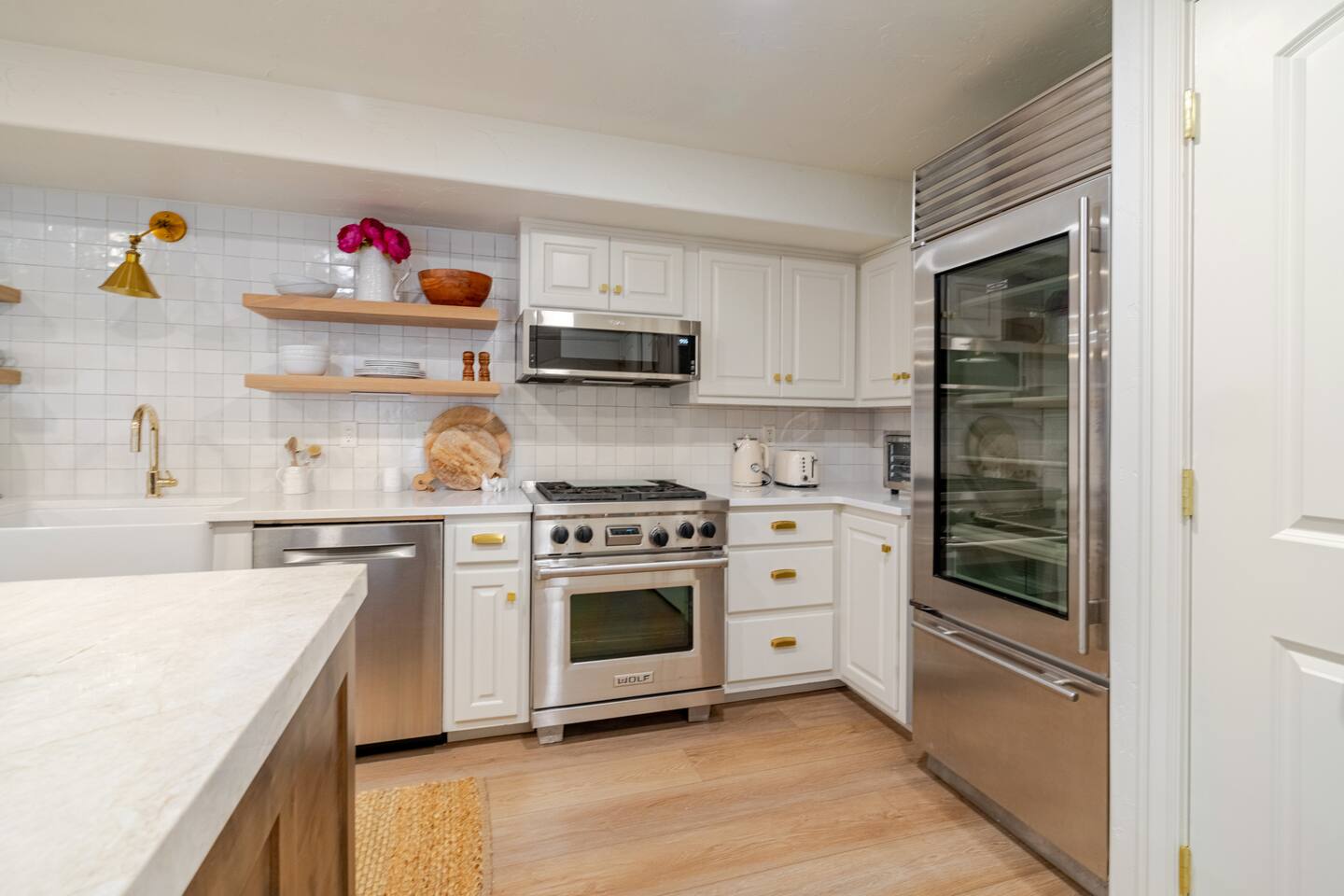 The apartment has been completely remodeled with high-end finishing touches such as a Wolfe oven, Sub Zero fridge, Bosche dishwasher and a Smeg coffee maker. The kitchen and family room flow altogether and has a very tranquil feeling with soft color hues throughout. The bedroom has a walk-in closet that a pack-n-play could fit in easily. Hand weights and Peloton bike included.